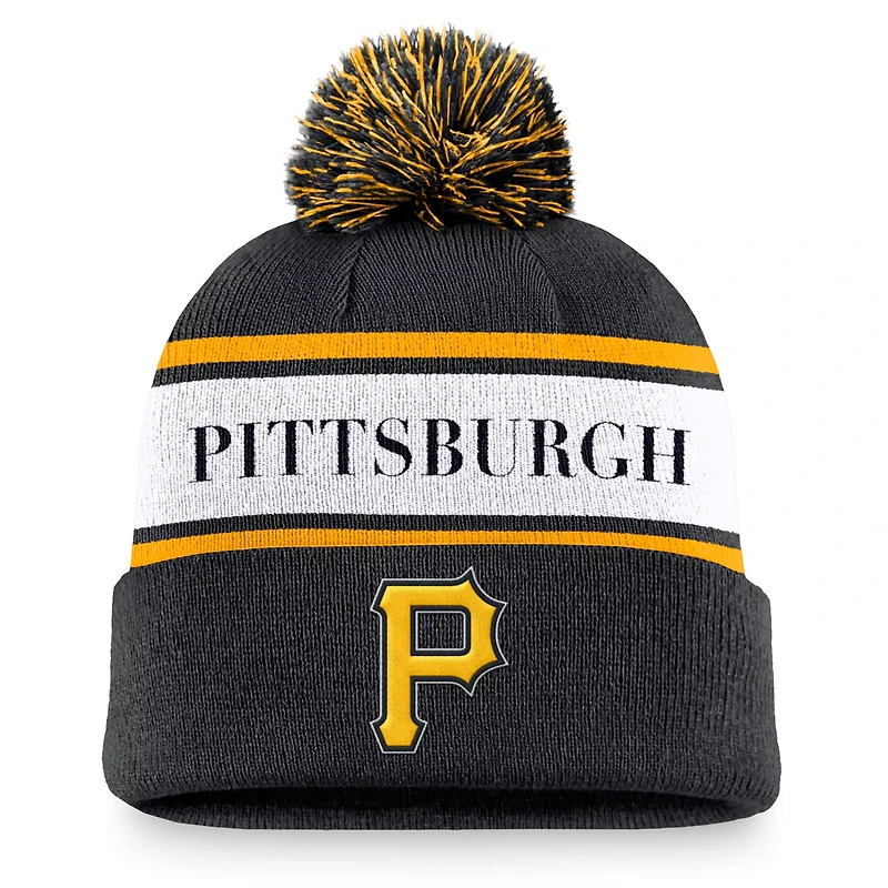 Nike Pittsburgh Pirates Team Stripe Peak Cuffed Knit Hat with Pom