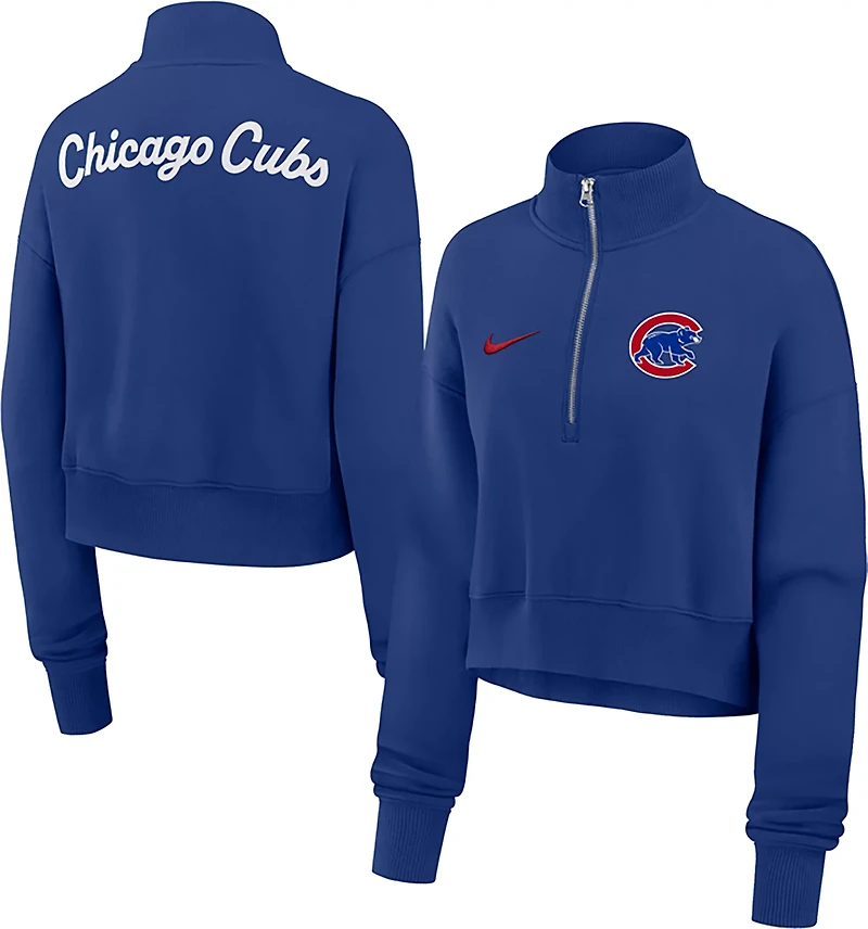 Nike Women's Chicago Cubs Phoenix 1/2-Zip Cropped Long Sleeve Fleece PulloverNike Women's Chicago Cubs Phoenix 1/2-Zip Cropped Long Sleeve Fleece PulloverNike Women's Chicago Cubs Phoenix 1/2-Zip Cropped Long Sleeve Fleece Pullover