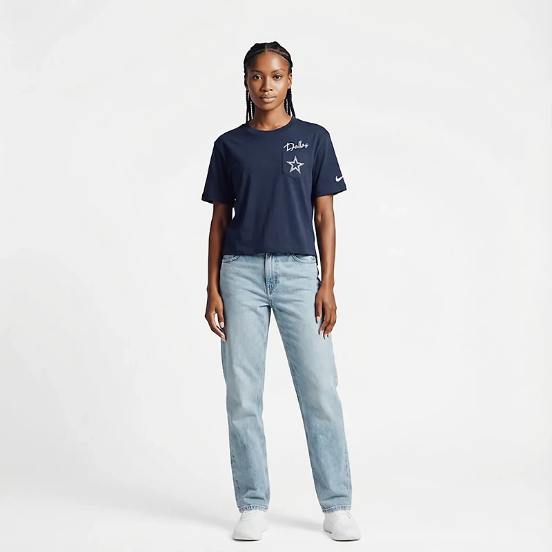 Support your favorite team this season by pulling on a Nike Women's Dallas Cowboys Dri-FIT Pocket T-shirt. Cotton blend fabric and Dri-FIT moisture management keep you comfortable all day long, while a front pocket logo graphic puts your fandom front and center.