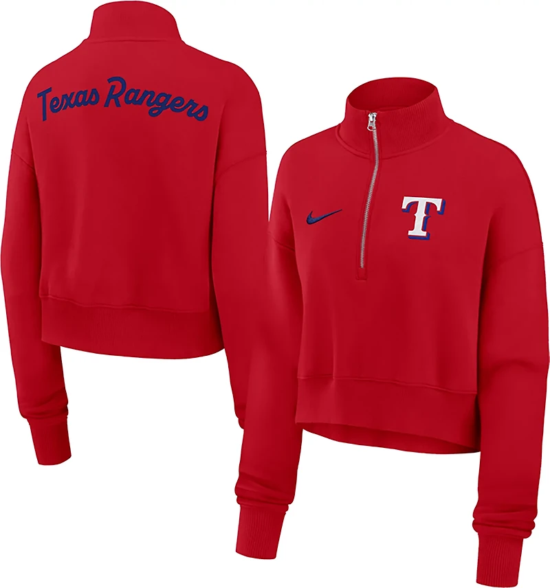 Nike Women's Texas Rangers Phoenix 1/2-Zip Cropped Long Sleeve Fleece Pullover