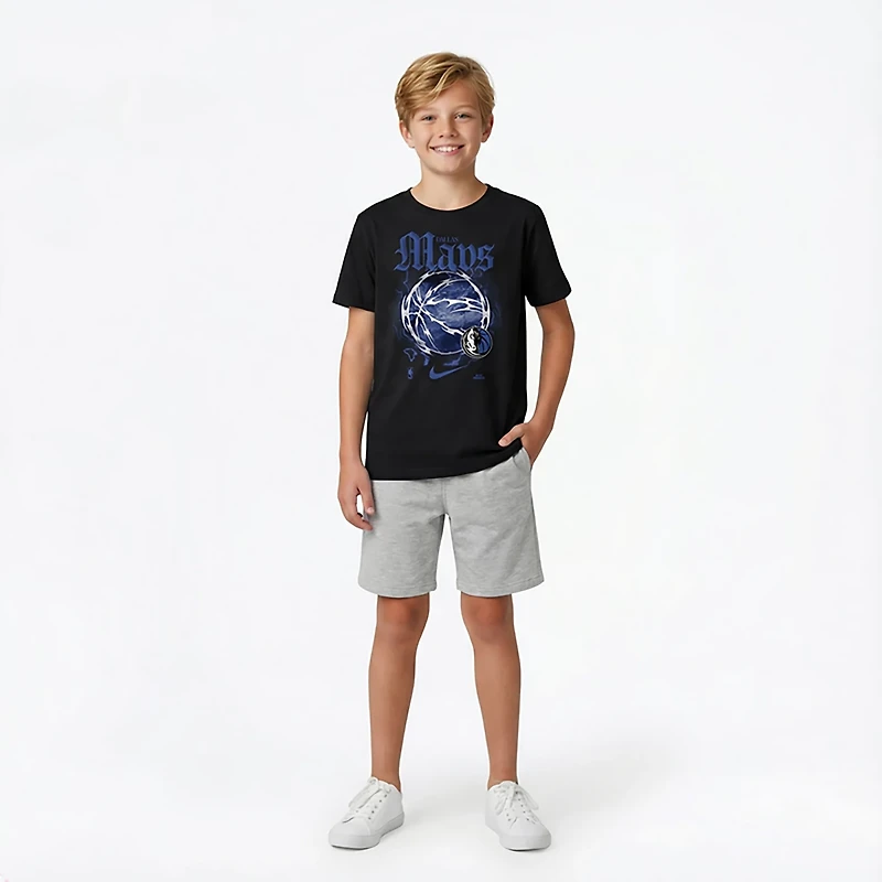 Wear your fandom with pride with the Nike Youth's Dallas Mavericks Courtside '25-'26 Edition Hal OGC Short Sleeve T-shirt. The cotton material is soft and breathable, and the relaxed fit is comfortable and easy to wear.