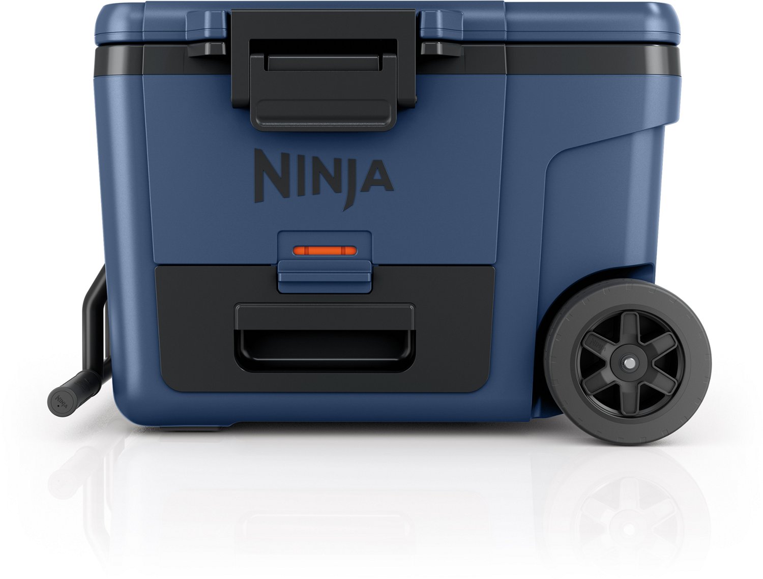 Meet the Ninja FrostVault 45 qt Wheeled Cooler - the cooler with premium ice retention and fridge-temp dry storage. With FrostVault Technology, cold transfers into the Dry Zone to keep food cool, dry and separate at food-safe temperatures (under 40° F) for days.
