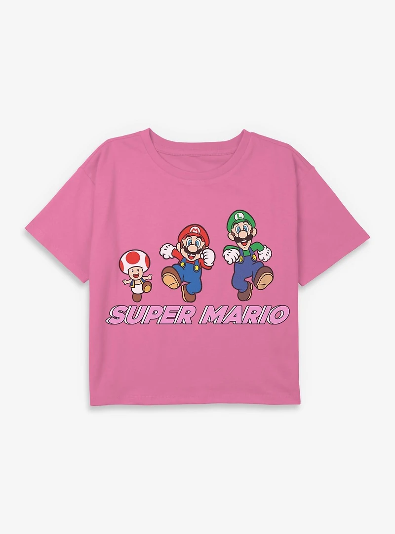 Nintendo Super Mario Group Fun Jump Youth Girls Boxy Crop T-Shirt
