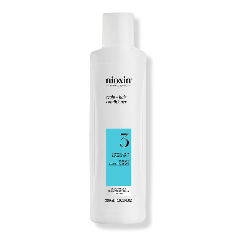 SYSTEM 3 SCALP CARE + HAIR COND 10.1OZ. Benefits: Thickens the hair: Nioxin System Kit 3 is clinically designed to add thickness and fullness to dry, damaged, color-treated hair with light thinning, with visible results in just 30 days.. Nourishes the scalp: Infused with nourishing botanicals and antioxidants, this kit's Scalp + Hair Thickening Treatment can nourish and revitalize the scalp, improving its overall health and condition.. Research Results: 85% of consumers noticed a thickening effect, 80% noticed an increase in hair density, 80% noticed an increase in hair fullness*. Disclaimers: *Based on a survey among 230 U.S. panelists concerned about thinning hair who tried the systems (each tested 1 system kit), conducted by SIRS, 2016.
