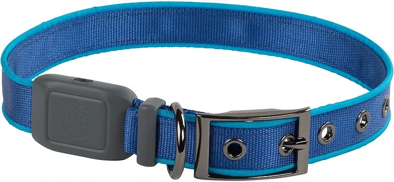 Keep track of your furry friend after dark with the NiteDog Rechargeable LED Collar. Internal LEDs bulbs shine through optic fibers for all-around illumination in 2 lighting modes. Water-resistant construction protects electronic components from moisture, while an adjustable belt buckle closure ensures a secure fit.