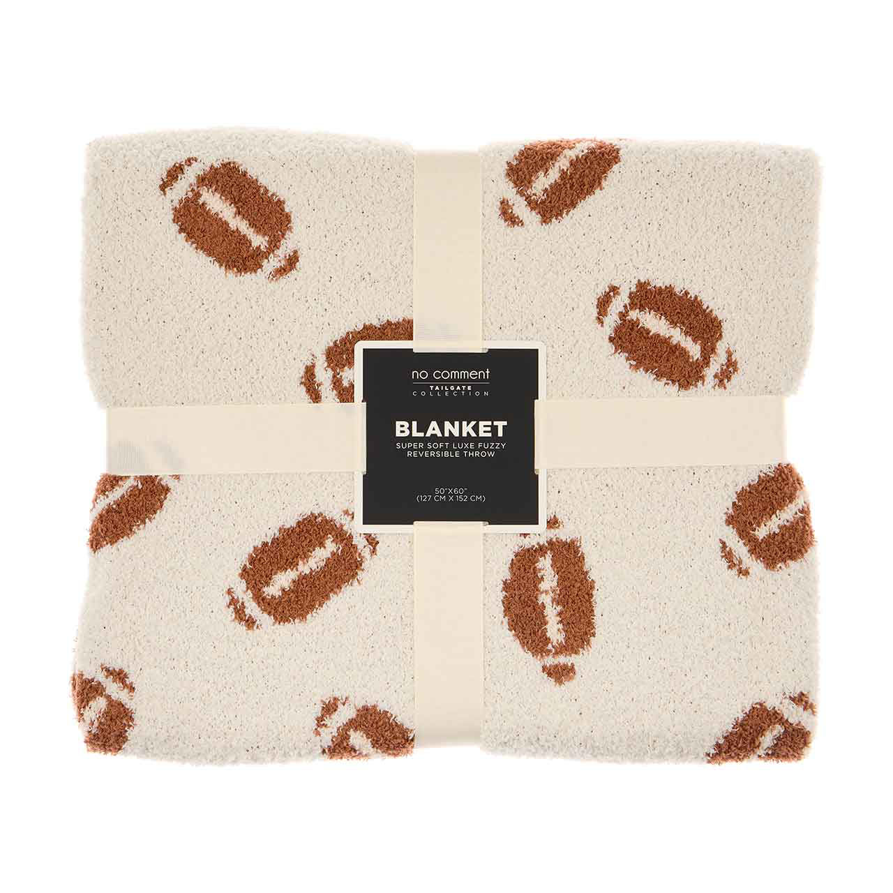Snuggle up in style with the No Comment Football Blanket, measuring a generous 50 inches by 60 inches. Perfect for football fans and cozy nights, this blanket brings a touch of sporty charm to your home decor.