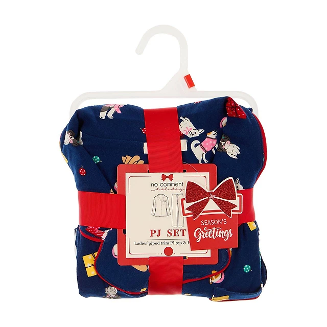 No Comment "Puppies" Ladies Holiday Pajama Set, Large
