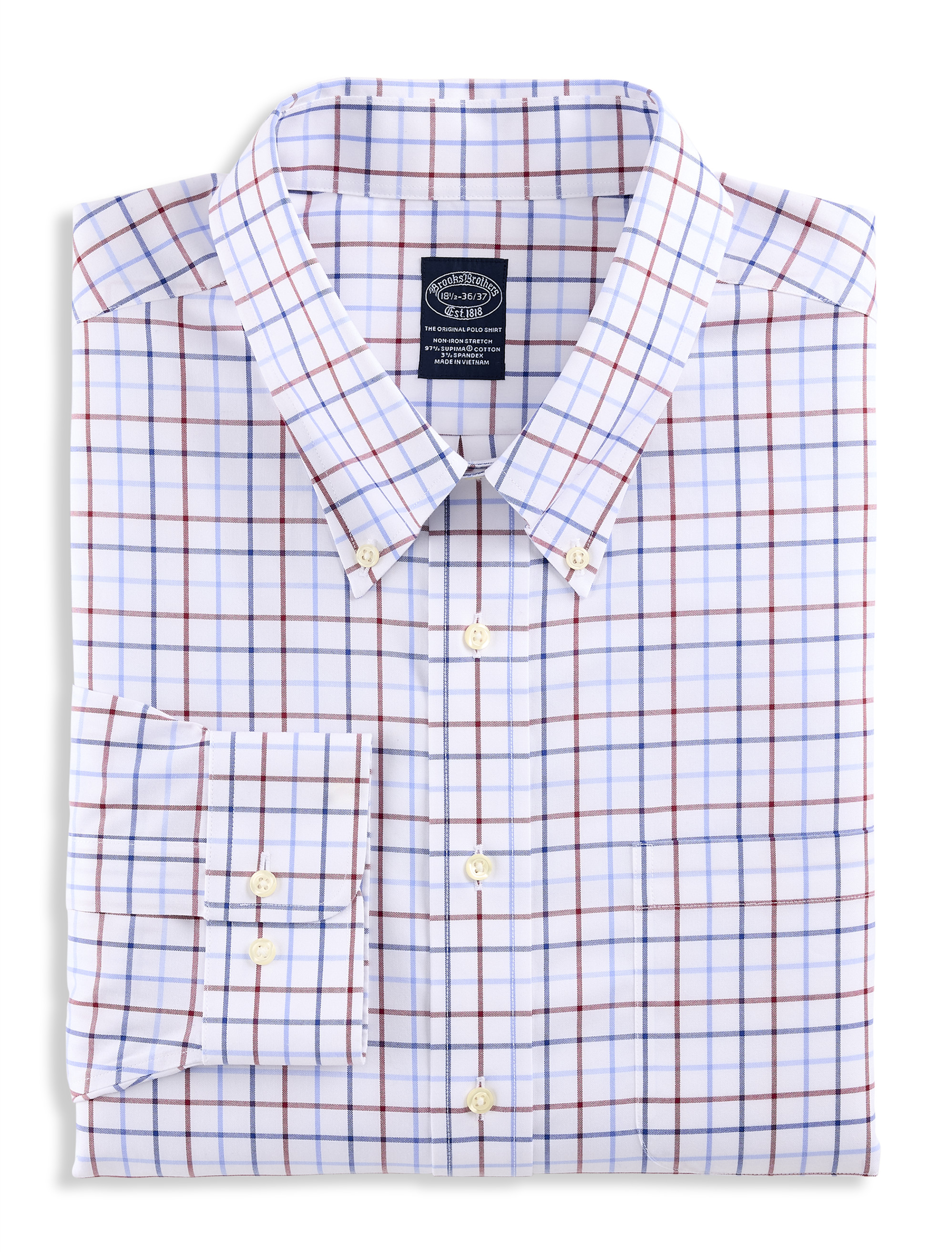 This classic dress shirt from Brooks Brothers was crafted in wrinkle-resistant cotton with added stretch for all-day comfort and the freedom to move without restriction. The check design pairs perfectly with khakis or jeans and looks right at home with a suit and tie.