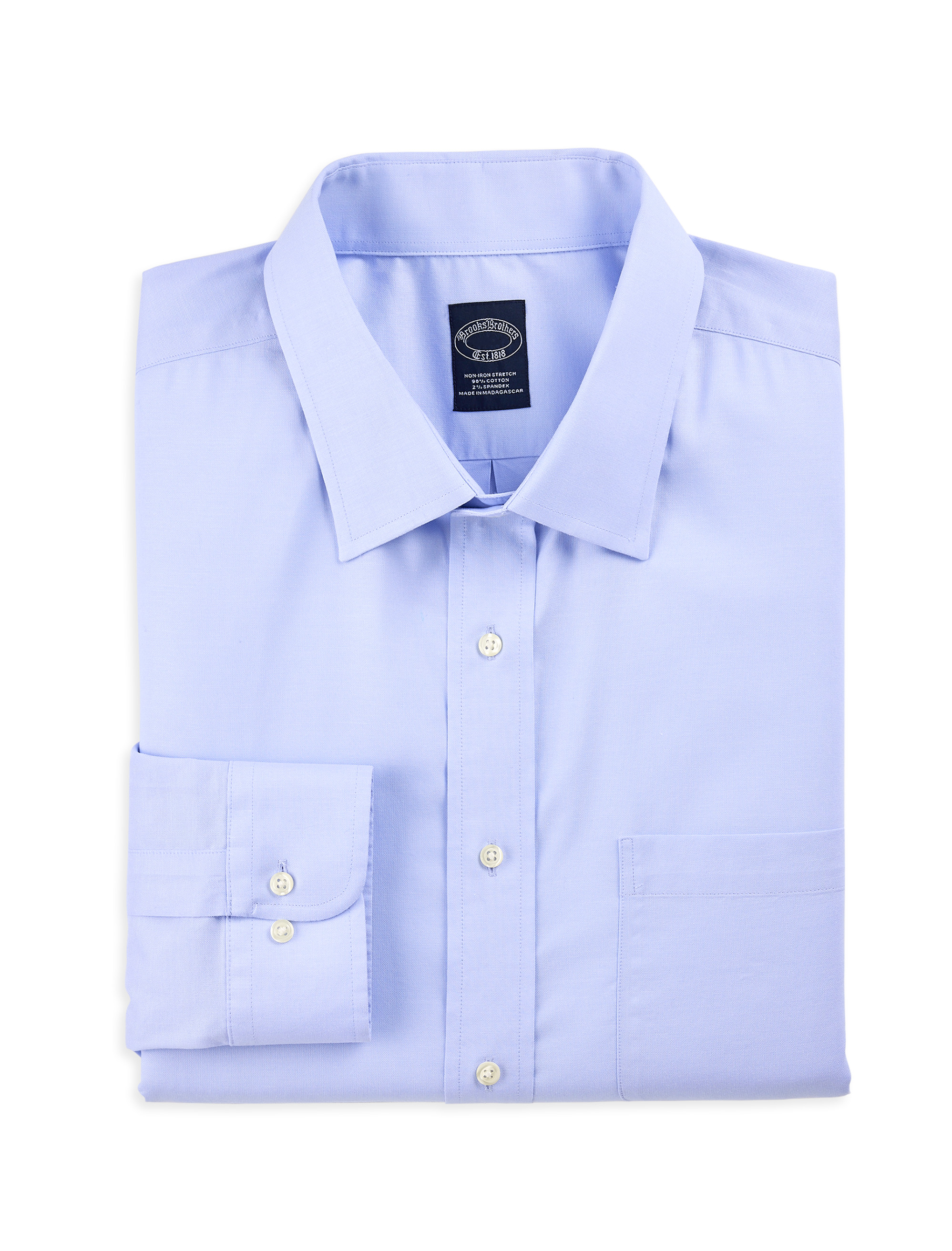 Wrinkle-resistant and expertly tailored, this classic Brooks Brothers pinpoint dress shirt shirt is a true timesaver. Crafted in soft cotton, it has a touch of stretch for all-day comfort, giving you the freedom and ease to move without restriction, no matter where the day takes you. Pair it with a suit or sport coat, dress it up with a tie or wear it untucked with jeans for a less buttoned-up look.