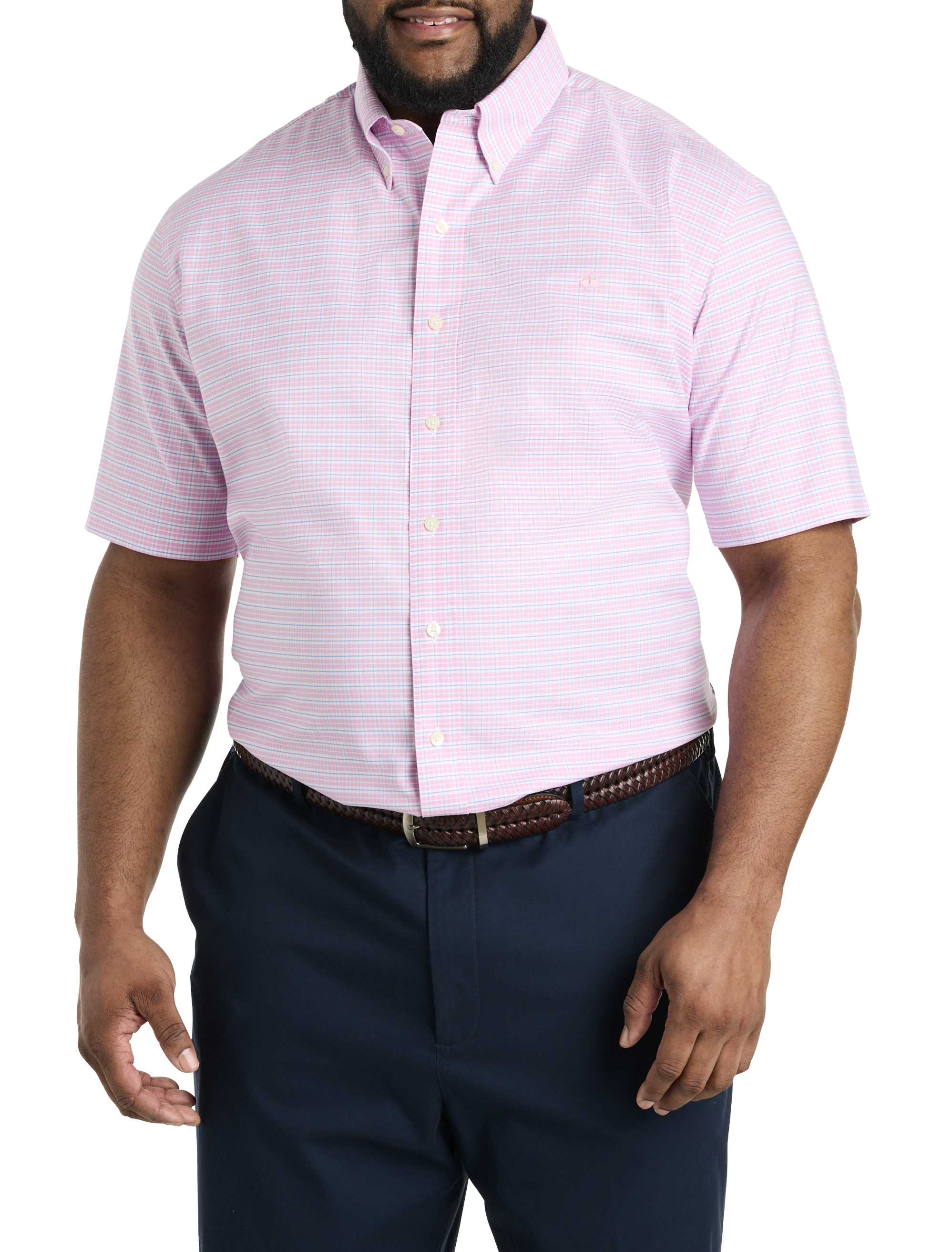 From casual days to more buttoned up looks, you'll find lots of ways to incorporate this plaid sport shirt from Brooks Brothers into your wardrobe. Designed with precise proportions and an ideal fit for Big and Tall guys, it's crafted of soft cotton with a hint of stretch and is a classic all year long. Treated to be virtually wrinkle-free, it's a great option for travel or any day you want to look your best. Darts at the back panel offer a tailored fit. Roll the sleeves up for a more casual look or add a sport coat to dress it up for a workday or special occasion.
