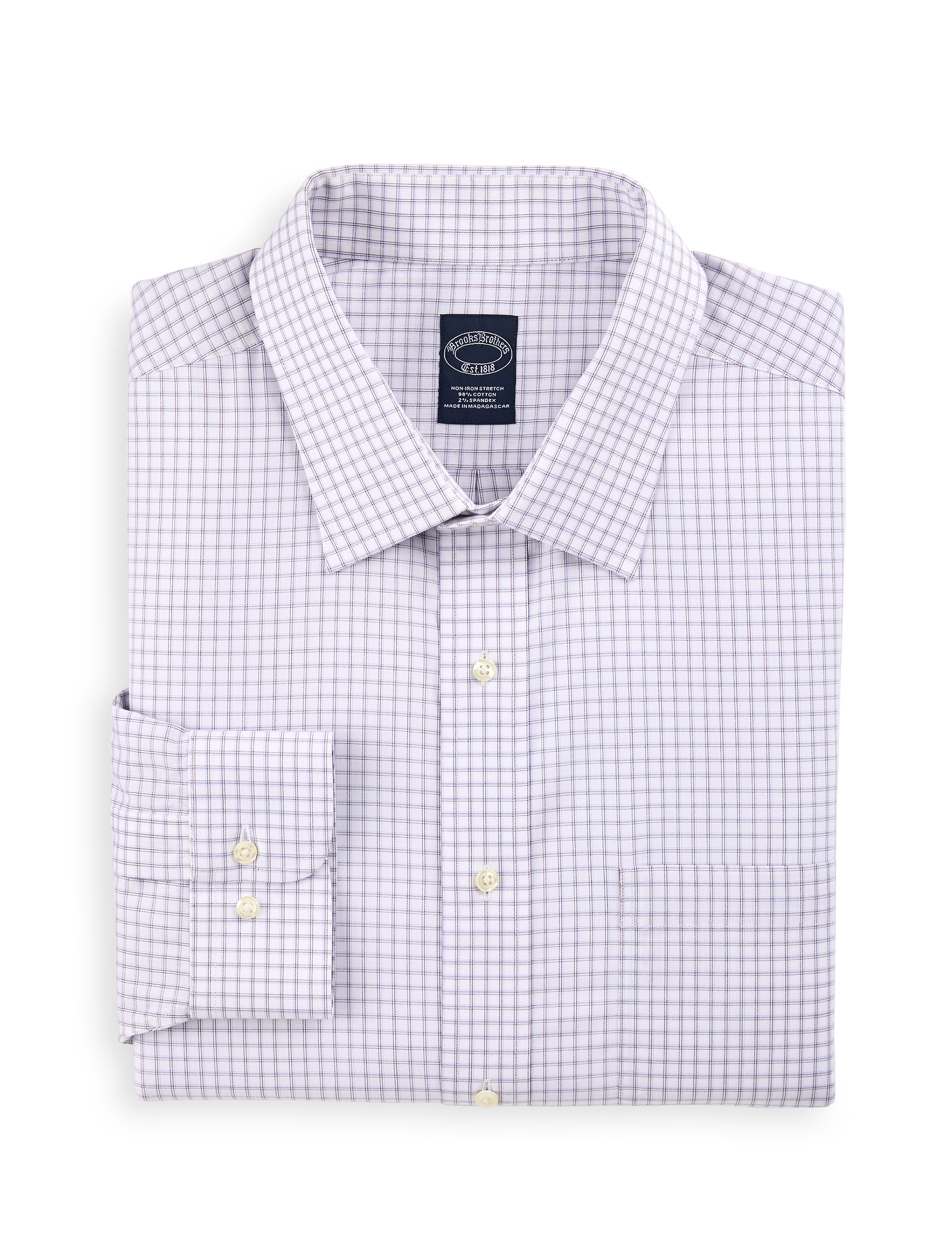 Wrinkle-resistant and sophisticatedly tailored, this classic Brooks Brothers dress shirt is a true timesaver. Crafted of soft cotton with a hint of stretch, the classic windowpane pattern is a perennial favorite. Treated to be virtually wrinkle-free, it's a great option for travel or any day you want to look your best. It's an update to some of our best-loved styles in a new color palette for the season.