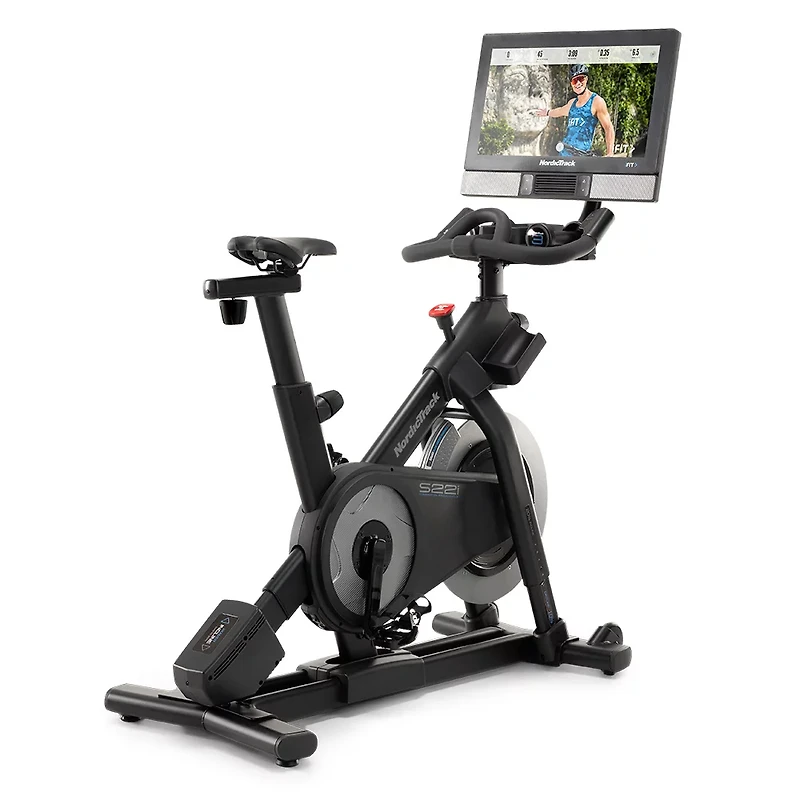 Bike like never before on the NordicTrack Commercial S22i Exercise Bike. It's equipped with an impressive 22-inch HD touchscreen, where you can track your stats and select and view workout programs. The bike comes with a 30-day membership trial to iFIT - giving you access to 1,000s of streaming workouts from elite trainers. Choose workouts located in Hawaii or Switzerland, and it'll feel like you're really there thanks to the screen's stunning graphics. This exercise bike also boasts two-sided pedals, a premium sound system and smooth, quiet operation. 350-pound max user capacity. AutoBreeze™ fan and dual water bottle holders included.