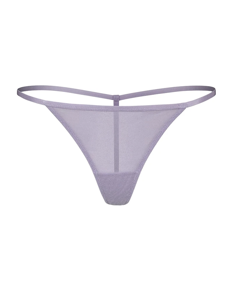 The Nori G-String Medium Purple sheer-fabric G-string is a classic staple for your top drawer. Designed with a pull-on design, Sheer, regular rise, and Full waistband elastic, it promises a barely-there feel and a sleek silhouette. (Available in sizes XS-XL.)