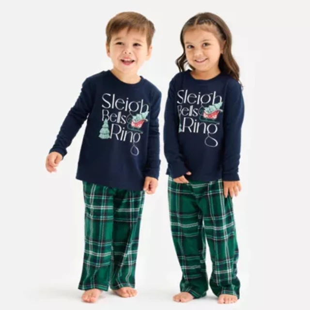North Pole Trading Co. Sleigh Bells Ring Toddler Unisex Crew Neck Long Sleeve 2-pc. Matching Family Pajama Sets