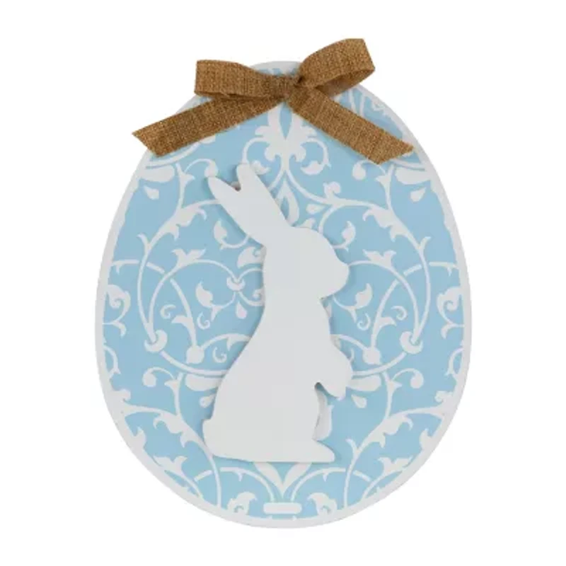Northlight 10" Blue Egg With Bunny And Burlap Bow Wooden Wall Sign in Chattanooga, TN