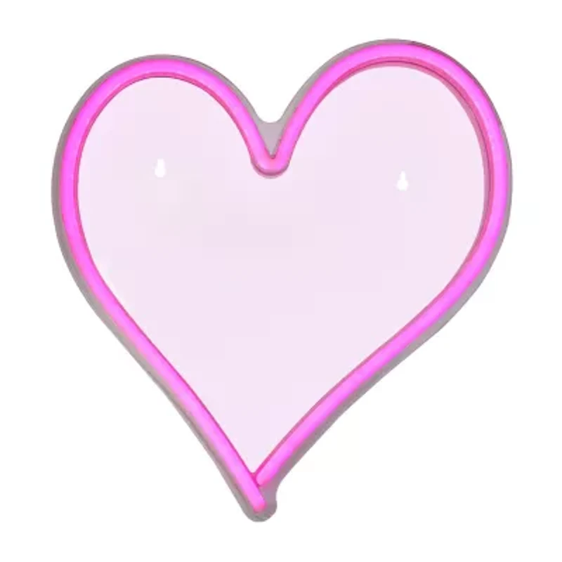 Light up your window girl cave or kid's bedroom with our modern neon style lighted wall sign. This classic pink heart comes ready for hanging with keyhole hooks at the top and can be hung on a wall or used a window sign. Great for Valentine's Day or Sweetest Day parties. Product Features: Color: pink bulbs / white wire. LED bulb type: SMD 2835. Approximate thickness: 8mm. Approximate width: 11mm. 6.75' lead cord. Double-sided design. Additional Product Features: LED lights use up to 80% less energy. Super bright vibrant bulbs. Bulbs stay cool to the touch. UL certified and approved for indoor only. Cannot be connected together with other lighted items. Comes ready-to-hang with two keyhole hooks at the top. Suction cups and hanging hardware not included. Class 2 power supply. AC adapter is rain tight. Input: 100-240 volts 50/60 hertz 0.25 amps. Output: 5 volts 0.67 amps 5 watts. Dimensions: 13.5"H x 12.5"W x 0.5"D. Material(s): plastic/silicone/wire/metal