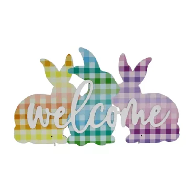 Northlight 14" Gingham Bunnies Welcome Wall Sign