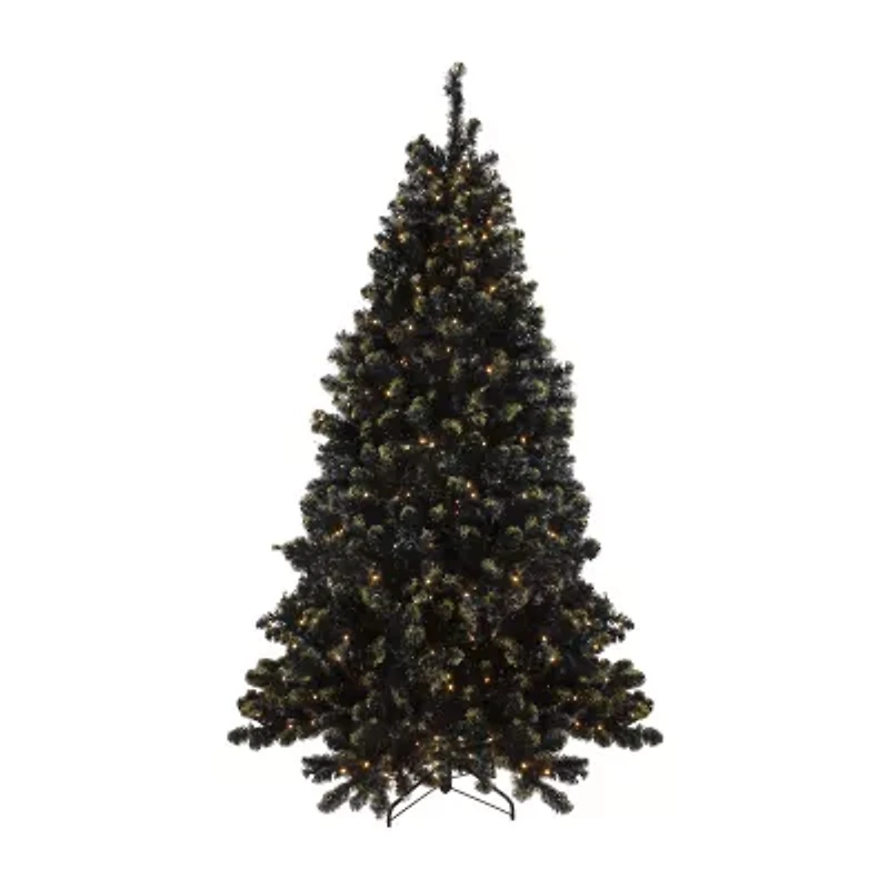 This beautiful dark tree makes a bold statement. Clear lights highlight the dark tips and let the glitter sparkle on this stunning beauty. Numerous tips give the tree a full and dimensional look. Indeed, a must-have in your holiday decor.