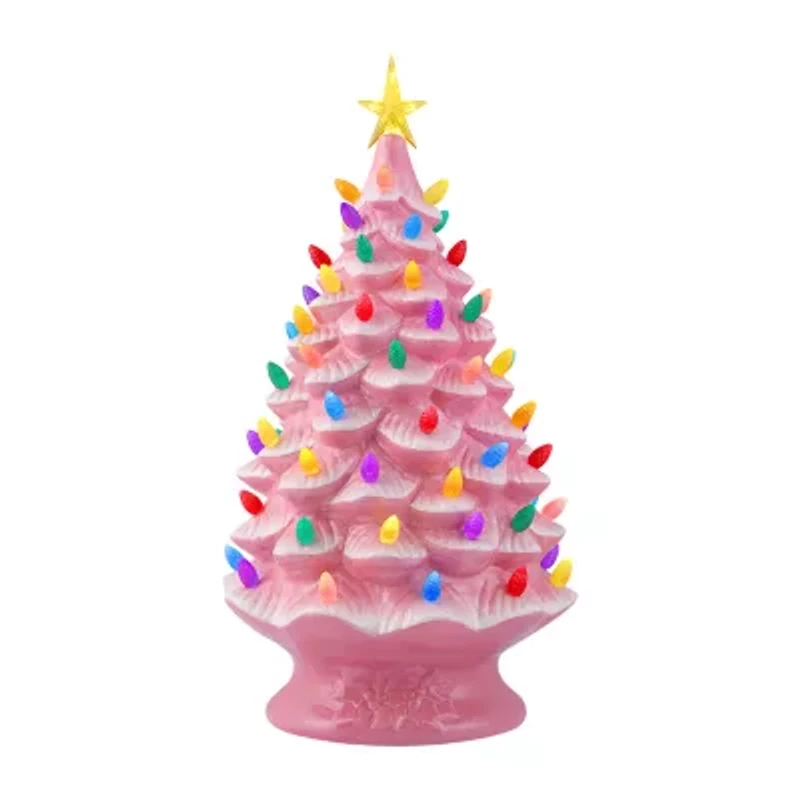 Bring the vintage charm home with this 24" Nostalgic Tree by Mr. Christmas. Inspired by the trees of decades past but brought into the present with new technology. LED light glows through the faceted bulbs, and a bright yellow star illuminates the top of this oversized tree with a polished pink finish. Operates on an included AC adapter with on/off switch. This tree looks great on the mantel, side table, bedroom, bookshelf, or anywhere that needs a festive touch. The Mr. Christmas Nostalgic Christmas Tree makes the perfect gift for your loved ones or yourself.