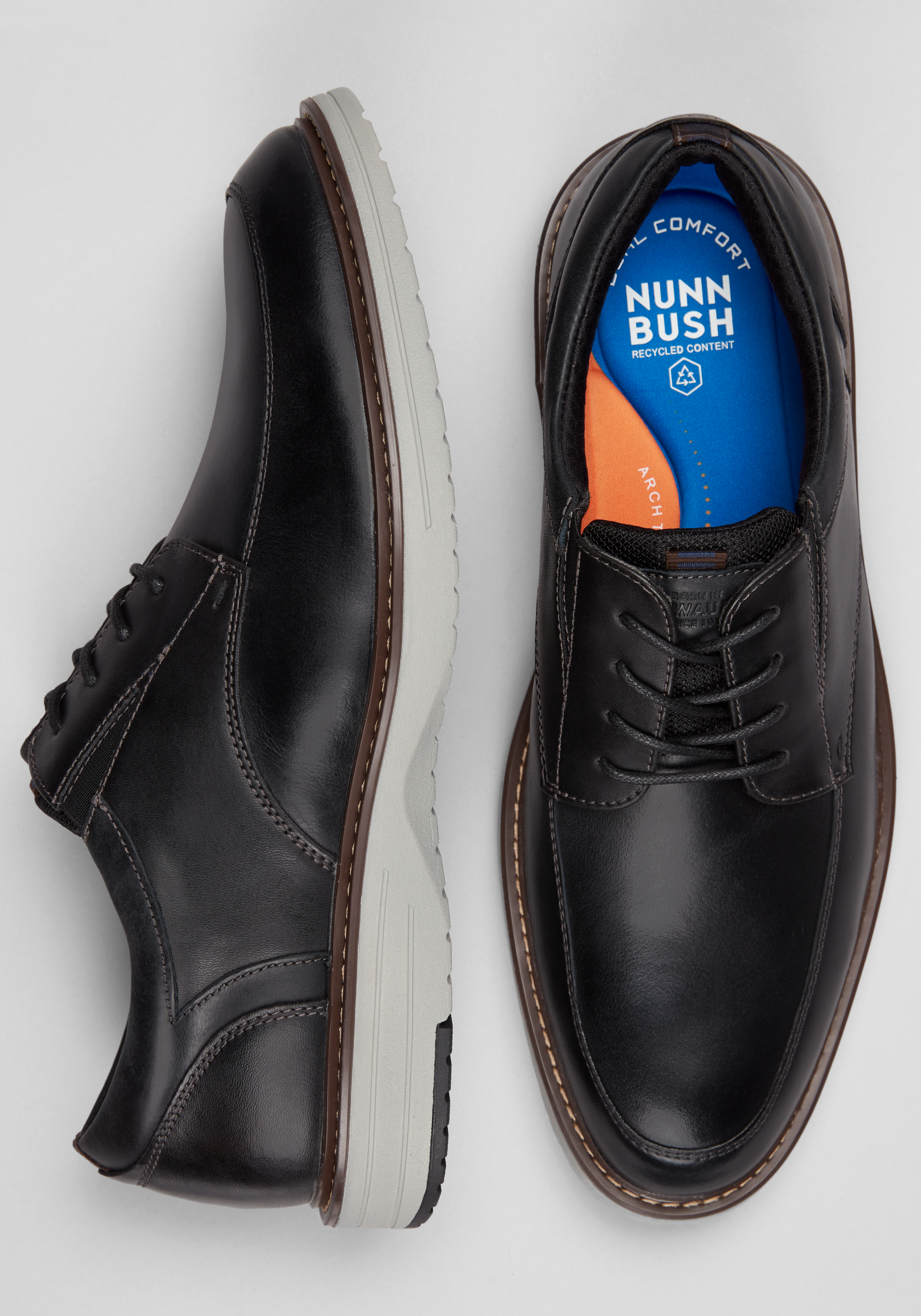 Versatile for both casual days and dressier occasions, these Nunn Bush Oxfords blend polished style with long-lasting comfort. A genuine leather upper pairs with breathable, fully padded mesh linings for moisture control and soft support. The EVA footbed, enhanced with eco-conscious Dual Comfort technology, cushions every step while offering arch support. An elastic gore patch adds slip-on ease and a flexible fit, and the lightweight sole with a shock-absorbing rubber heel pod keeps you moving comfortably from morning to night.