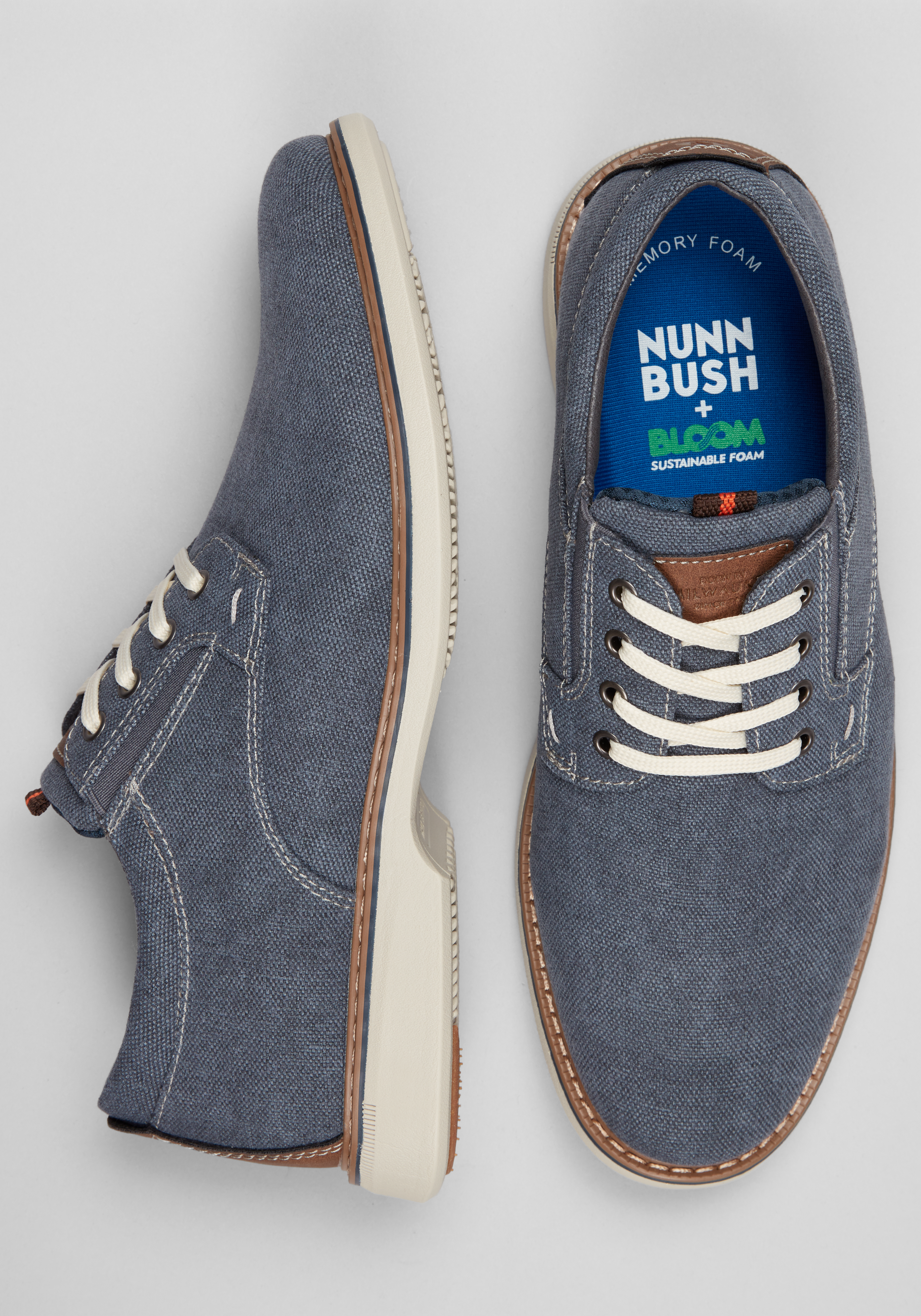 Blending timeless design with laid-back ease, these Nunn Bush Oxfords bring a fresh, modern twist to classic Oxford style. The cotton canvas upper and contrast sole create a smart-casual look that pairs effortlessly with everything from jeans to chinos. Inside, breathable mesh linings and a cushioned EVA footbed with memory foam made in part from eco-friendly BLOOM, and algae-based material keep every step comfortable. Finished with a lightweight, flexible sole and built-in Flex Technology, they're designed to move with you from workday to weekend.