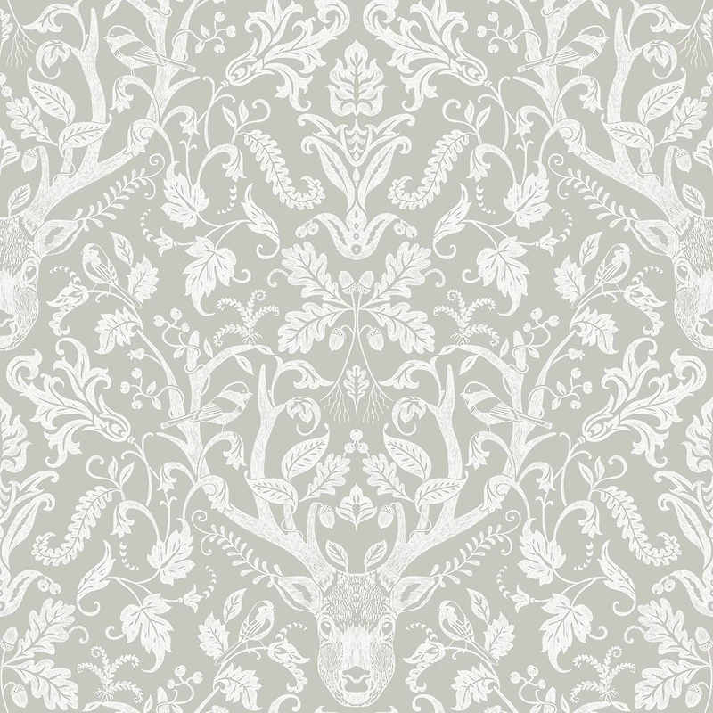 A whimsical, Scandinavian-inspired twist on a classic damask design, Escape to the Forest is the sweetest addition to a nursery or powder room. Its neutral and cool color palette will complement a variety of décor styles. Taupe Escape to the Forest Peel and Stick Wallpaper comes on one roll that measures 20.5" wide by 18 ft. long.Details:TaupeComes on a 20.5" x 18 ft. roll and covers about 30.75 sq. ft.Design repeat of 20.5"Scandinavian-inspired damask peel and stick wallpaperPeel and stick to apply, pull up to removeNuWallpaper is safe for walls and leaves no sticky residue behindEasily repositionable while installingNuWallpaper sticks to any smooth, flat surface - perfect for DIY projectsIdeal for rental or home decoratingThis product should NOT be applied to textured walls - smooth clean, dry, painted surface only (no Non-Stick paint or soap residue)