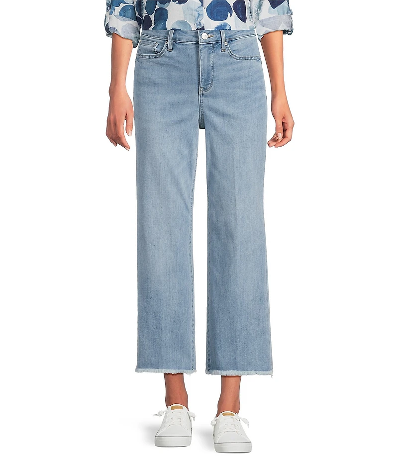 NYDJ Coco Stretch Denim Wide Leg Frayed Hem Cropped Jeans