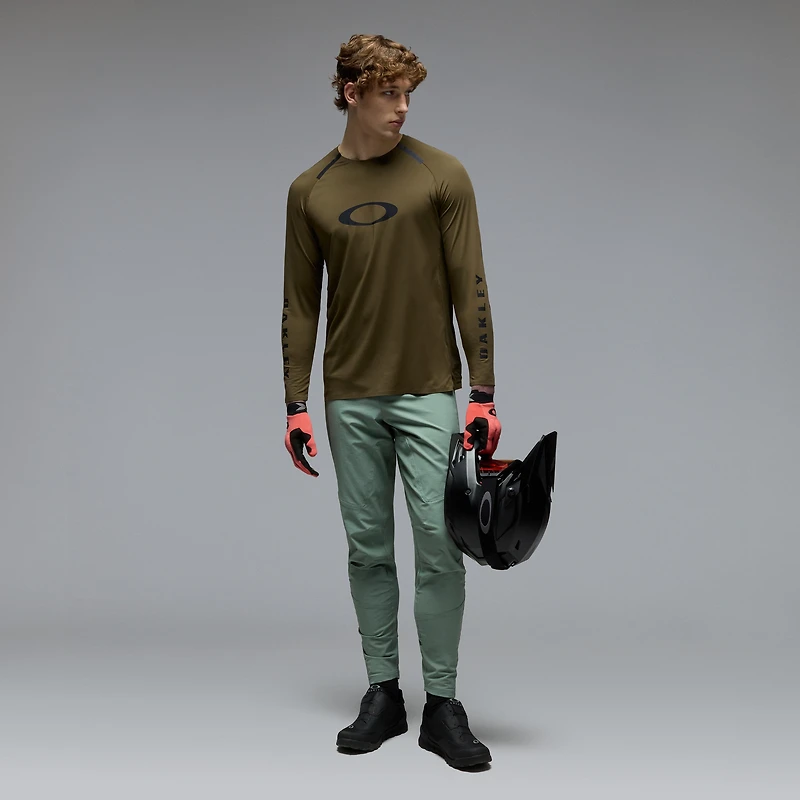 Your go-to jersey for the toughest terrains and the most demanding conditions. Sweat-wicking and fast-drying, it also guarantees plenty of cooling airflow thanks to the strategically placed underarm laser holes. The drop tail hem prevents the top from riding up, protecting your back from road spray and the elements, and also ensures greater freedom of movement together with the side slits. The neat bonded finish at the hem, neck and sleeves adds an aesthetic touch as well as extra durability to the garment. Regular fitting with oakley heat transfer logos on chest and sleeves.