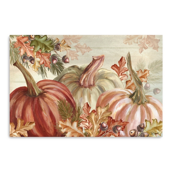 Awaken your home with the beautiful treasures of fall! The October Symphony I Harvest Canvas Art Print makes a gorgeous statement while radiating warmth and autumnal charm. Overall dimensions Width: 16 in. Depth: 1.25 in. Height: 24 in. Distinctively printed on stretched canvas Wrapped edges complete the look Features pumpkin and leaves subject Hues of orange, green, red, and brown Weight: 1.8 lbs. Hangs from back-mounted hardware Care: Dust with a soft, dry cloth. This item is available at Kirklands.com only, not available in stores. Please note: this item cannot be shipped to APO/FPO addresses.