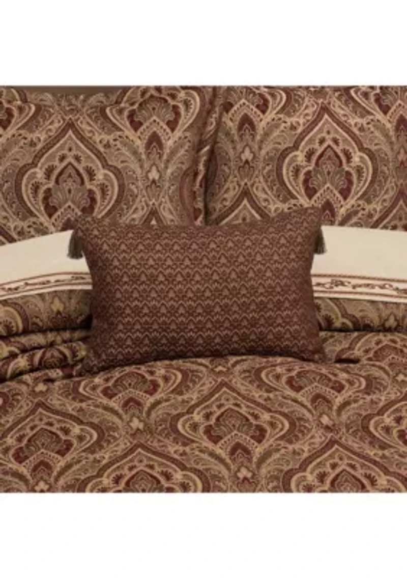 The Odette Boudoir Throw Pillow features a timeless woven foulard design in stunning gold, chocolate, and crimson red. Coordinating tassels are carefully inserted on all corners for a fine finish. Pair this luxe accent pillow with the Odette comforter set for a complete elegant look. • 14"x21" 1 piece(s) included CN Imported Product Specifications 14 -in. x 21 -in Material & Care Polyester Fill Polyester Dry clean only