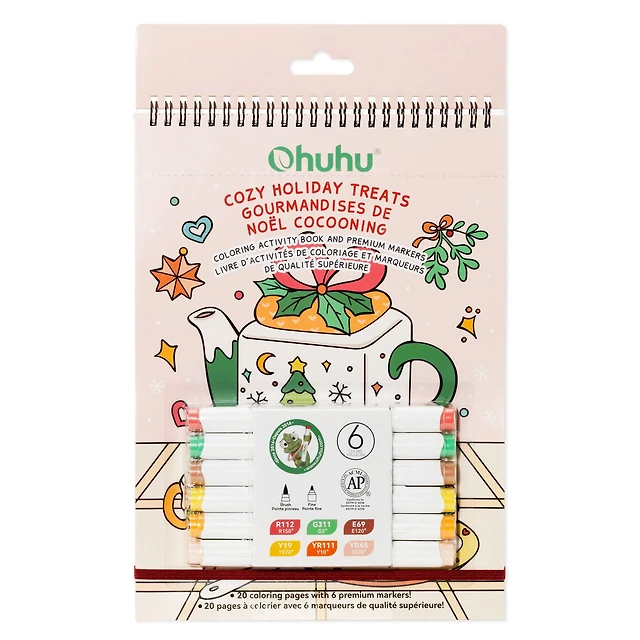 Ohuhu® Cozy Holiday Treats Coloring Activity Book & Premium Markers