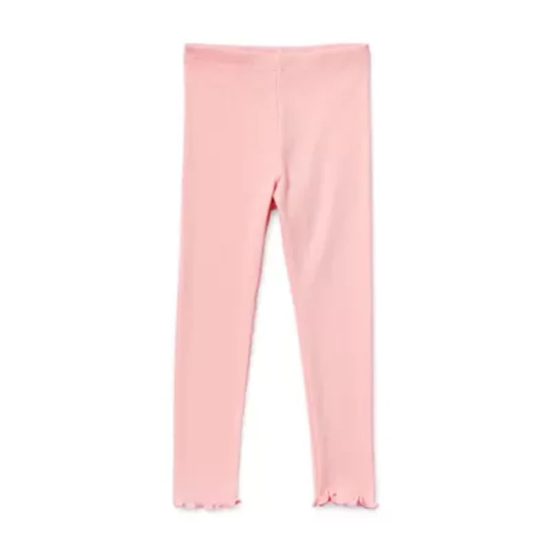 Deemed a Gotta-Have-It item for value you can count on every day! Leggings are essential for her wardrobe rotation, so add this comfortable full-length pair from Okie Dokie's toddler and little girl's collection. Made from a soft, ribbed stretch-cotton, they have an elastic waistband and lettuce-trimmed cuffs. Style them with everything from dresses to t-shirts.
