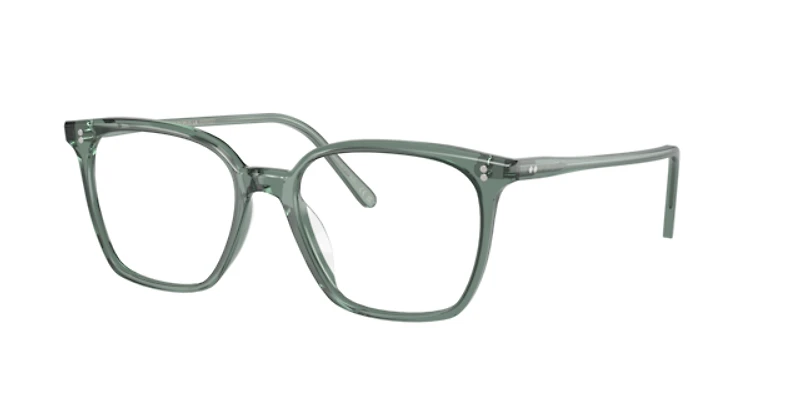 Oliver peoples rasey eyeglasses are a stylish and comfortable choice. The square frames, made of high-quality acetate, come in a sleek ivy color. With a distinctive design on the temples, these frames add a touch of sophistication to any outfit. Enjoy the timeless charm of these elegant shades. Available with prescription lenses.