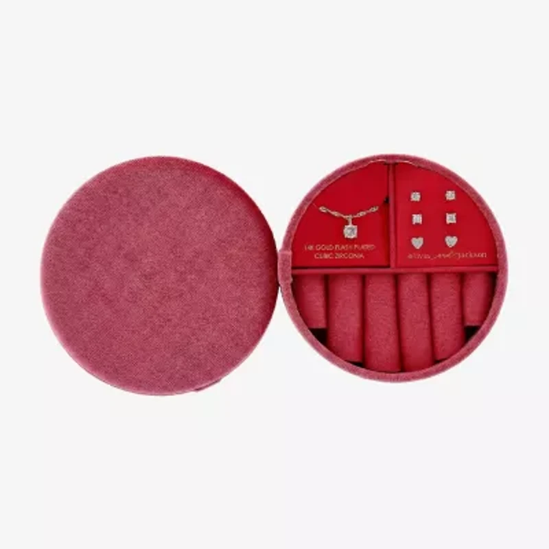olivia and jackson Womens Cubic Zirconia 14K Gold Over Brass Heart Round 5-pc. Jewelry Set