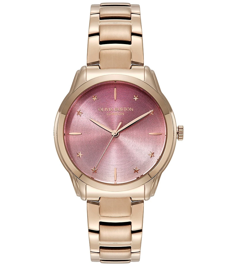 From Olivia Burton, this women's watch features: Stainless steel bracelet and case Ombre dial Link/clasp closure Quartz analog movement Case diameter approx. 36mm Water resistance: 3B Imported.