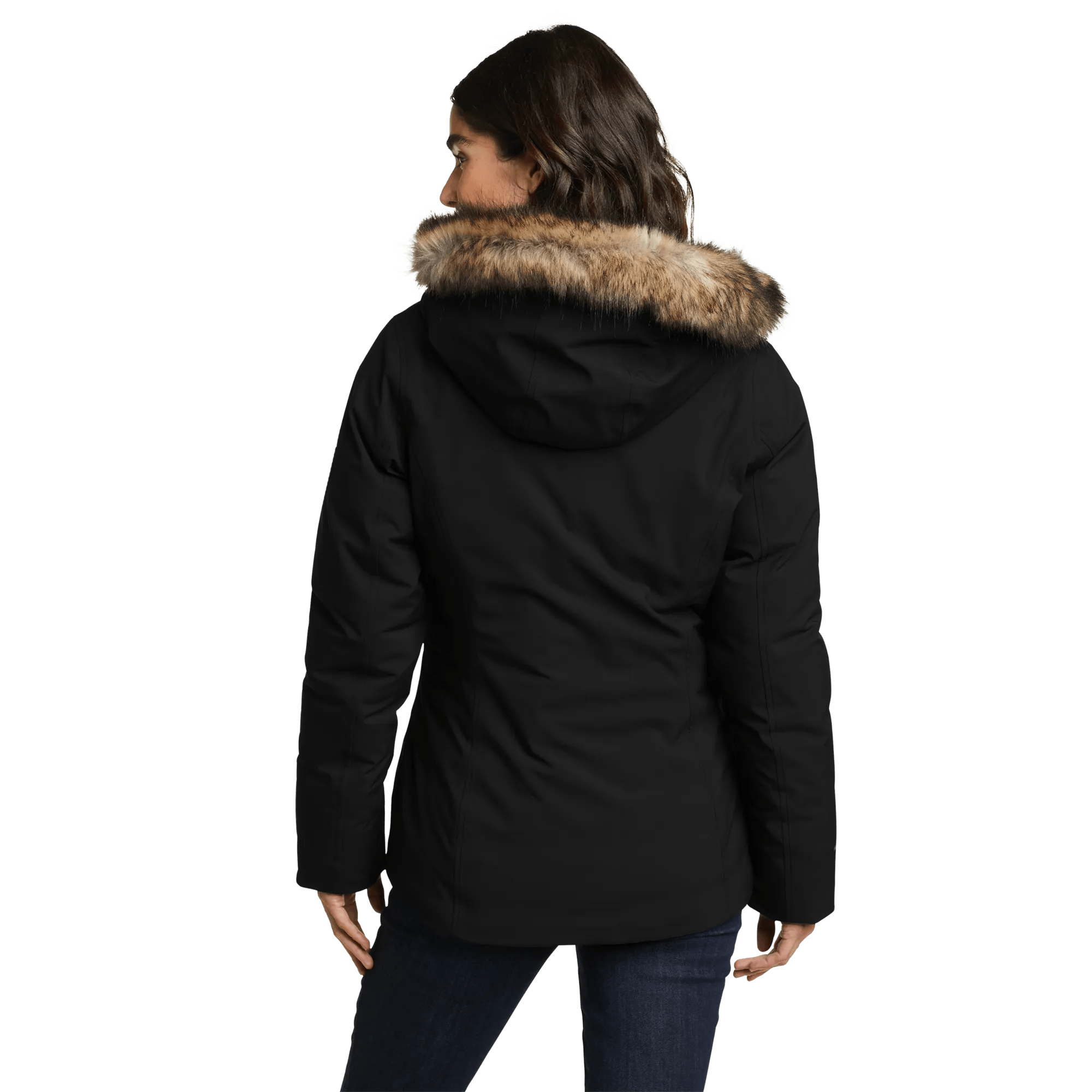 - Removable faux fur ruff