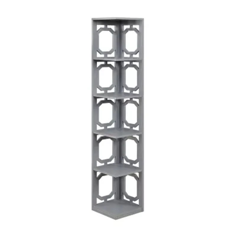 Completely transform an unused corner with the help of the omega 5 tier corner bookcase by convenience concepts. Featuring a contemporary style, this spacious corner tower will update your home decor and optimize your storage and display capacity. With geometric side designs, it will bring a fashionable and unique look to any room in your home. Boasting 5 ample shelves, this furniture piece provides enough space for all your books or favorite collectibles. Constructed from mdf and finished with a beautiful non-lead based paint. Add to your living room, den or home study just minutes after delivery with its easy 4 step assembly. Available in multiple finishes to complement any style. Complete the look with additional pieces from the omega collection by convenience concepts. Each sold separately.