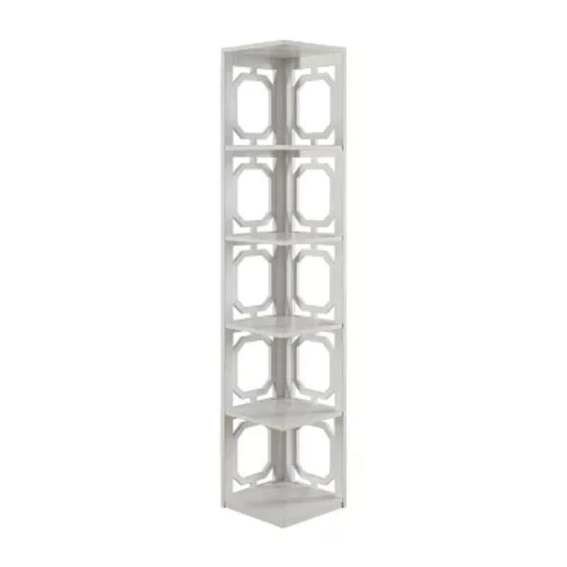 Completely transform an unused corner with the help of the omega 5 tier corner bookcase by convenience concepts. Featuring a contemporary style, this spacious corner tower will update your home decor and optimize your storage and display capacity. With geometric side designs, it will bring a fashionable and unique look to any room in your home. Boasting 5 ample shelves, this furniture piece provides enough space for all your books or favorite collectibles. Constructed from mdf and finished with a beautiful non-lead based paint. Add to your living room, den or home study just minutes after delivery with its easy 4 step assembly. Available in multiple finishes to complement any style. Complete the look with additional pieces from the omega collection by convenience concepts. Each sold separately.