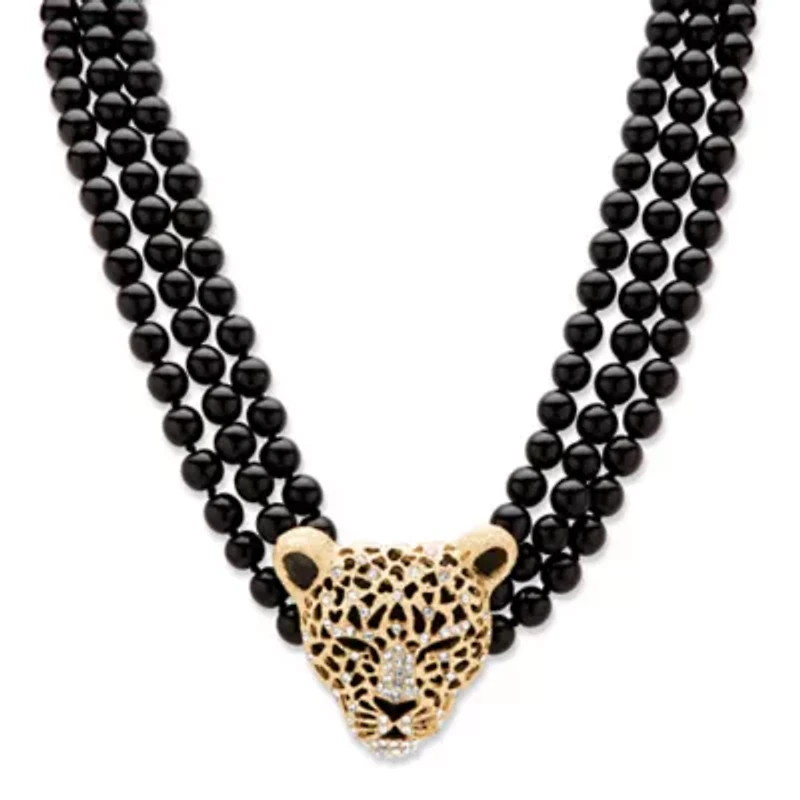Onyx and Crystal Leopard Beaded Necklace in Yellow Goldtone in Chattanooga, TN