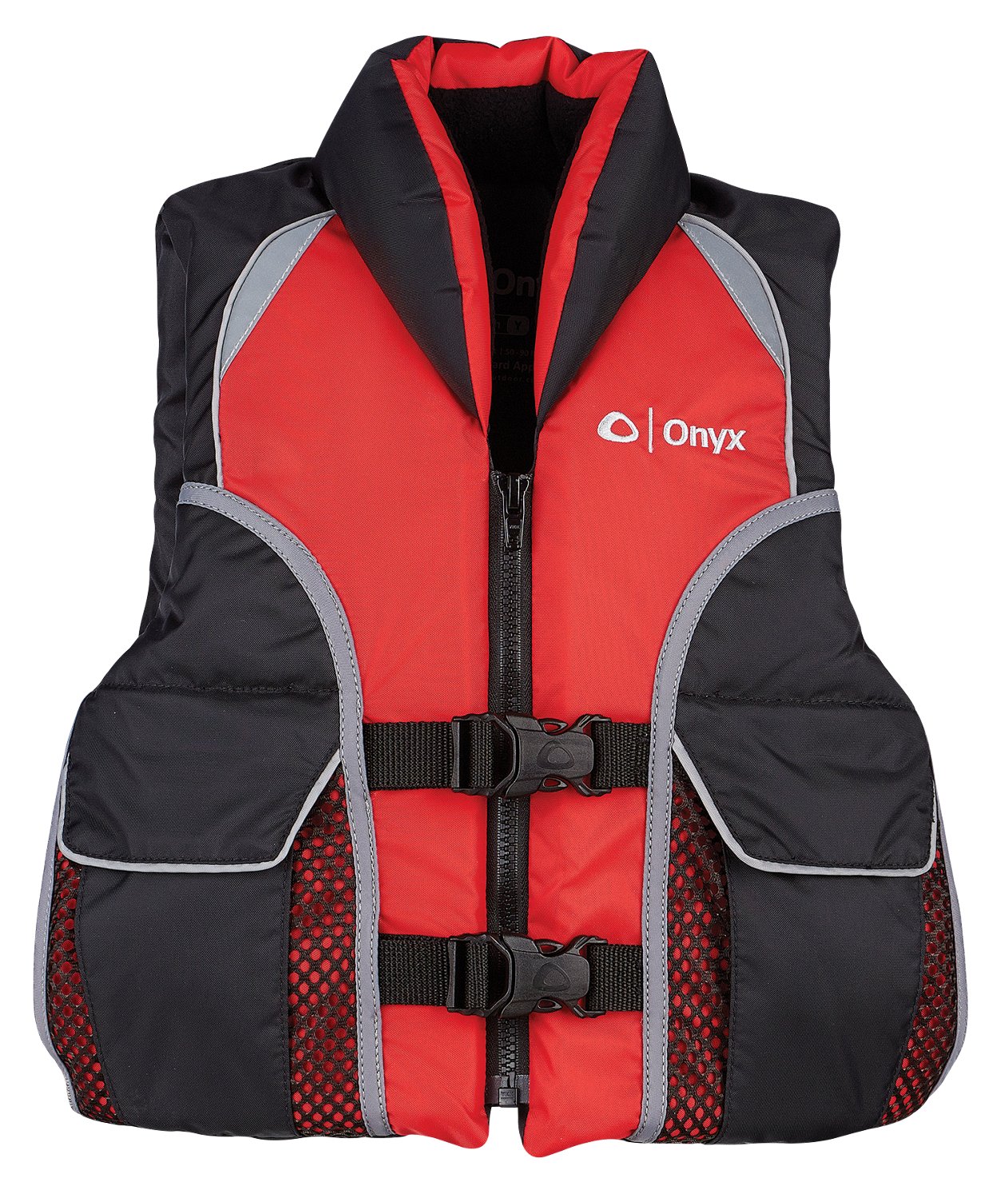 Make sure your child is prepared in case of emergency with the Onyx Outdoor™ Kids' Select Vest. This vest is made of lightweight, durable flotation foam and features reflective material on the front and back for visibility in low-light conditions. The fleece-lined handwarmer pockets help keep your little one warm, and the soft, fleece-lined, fiber-fill collar provides comfort. Mesh storage pockets. USCG approved.