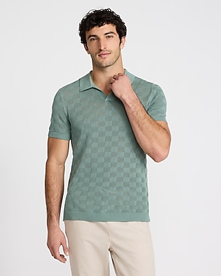A breathable cotton-blend short sleeve sweater polo complete with a Johnny collar and an open stitch checkered print.
