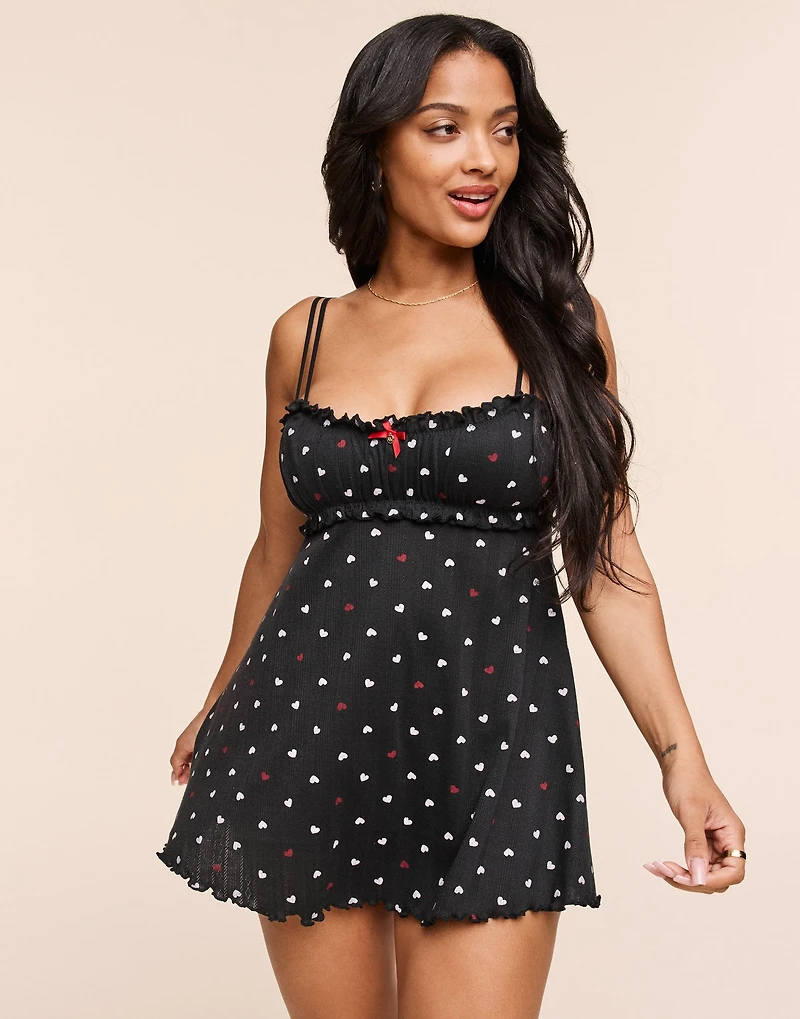 The Ophylia babydoll is a classic girly nightgown made from a feminine knit. With a built-in shelf bra, adjustable straps, soft ruffle lettuce hems, and a matching hipster panty, you'll be in comfort and style all night long. (Available in sizes XS-4X)
