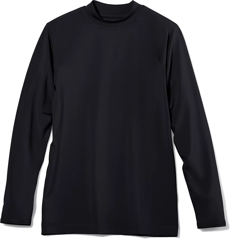 Keep your swimming-obsessed little one comfortable and safe in this O'Rageous Boys' Solid Long Sleeve Rash Guard. It is made of 88% recycled polyester and 12% spandex for durability and flexibility, and the rash guard delivers UPF 50+ protection to guard users from UV rays.