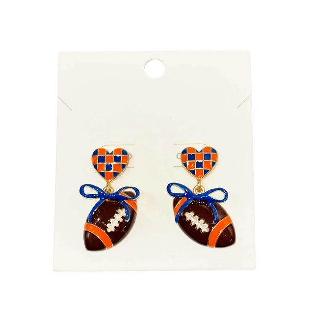 Garnet and Black Checkered Heart and Bow Football Earrings