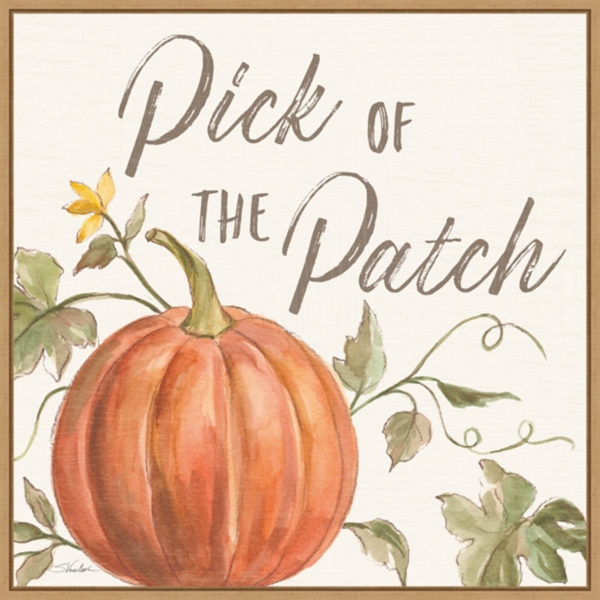 Make the Thanksgiving season look better than ever this year! Our Orange Pick of the Patch Framed Canvas Art Print features a warm design that’ll look great on any wall. Art measures 22L x 1.9W x 22H in. Printed with high-quality, fade-resistant inks on premium stretched canvas Wrapped in a tan, floating frame Features the phrase "Pick of the Patch" Accented with a pumpkin design Hues of ivory, orange, brown, yellow, and green Weight: 3.8 lbs. Hangs from back-mounted hardware Care: Dust with a soft, dry cloth. This item is available at Kirklands.com only, not available in stores. Please note: this item cannot be shipped to APO/FPO addresses. WARNING: This product can expose you to chemicals including formaldehyde which is known to the state of California to cause cancer and birth defects or other reproductive harm. For more information go to www.P65Warnings.ca.gov .