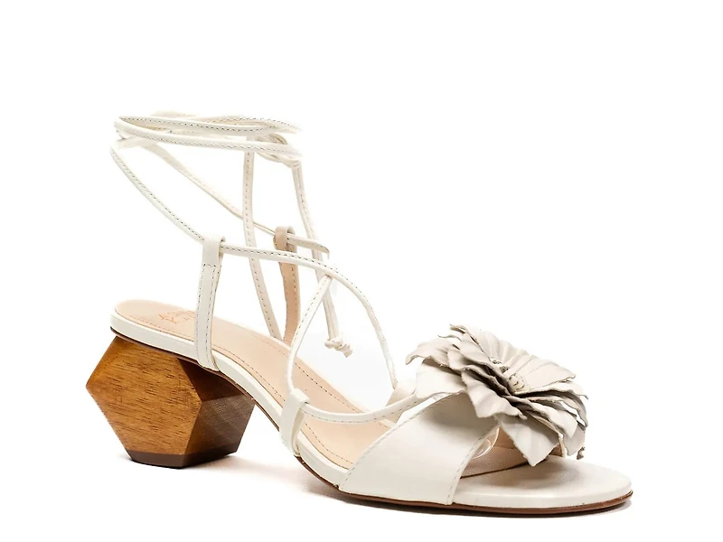 Your summery style blossoms with the Orchid sandal from Ashley Kahan. Floral detailing, a daring ankle tie silhouette, and bold block heel combine for an eye-catching addition to your wardrobe.