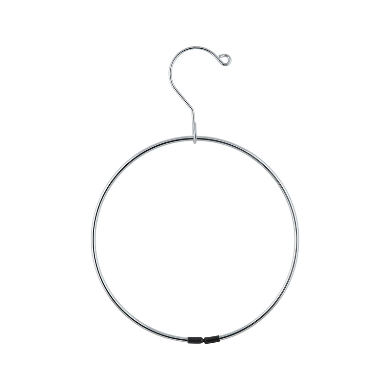 Conveniently hang your belts and scarves! The ring hangs in any closet to organize your items. The loop separates and spins freely to allow for easy addition and removal of a single belt. Keep your closet looking clean and organized. You can also use the ring in the bathroom or kitchen to hang hand towels.Details:Chrome8" loop diameter with 3" hookMetal