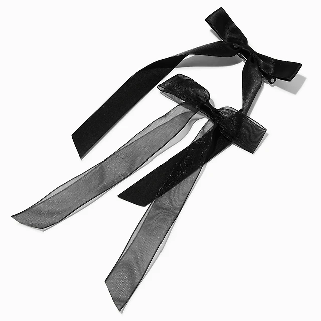 Black Fabric Organza Diamante Cup Chain Hair Bow Clip