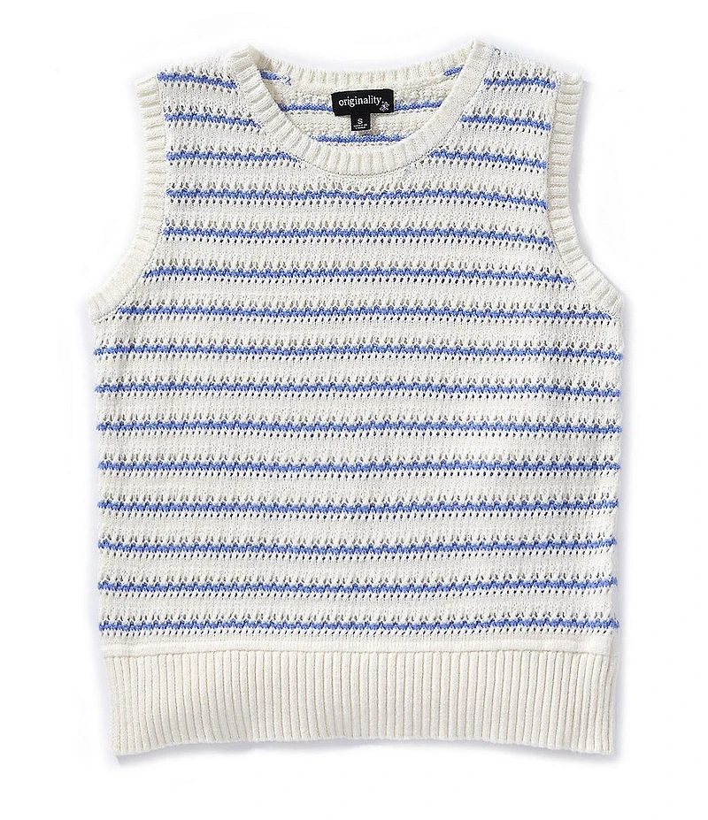 Originality Big Girls Striped Round Neck Sleeveless Sweater Vest
