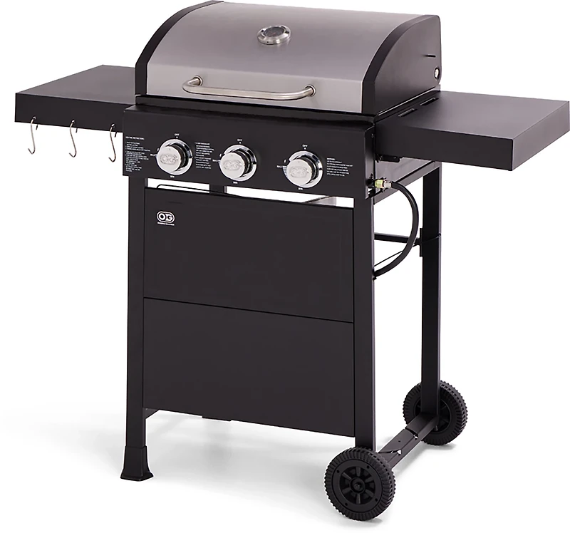 Cook up burgers, steaks, chicken and veggies for the whole family on the Outdoor Gourmet 3-Burner Liquid Propane Grill. Its spacious cooking surface features 3 stainless steel burners for powerful performance, and the folding side shelves combine with “S” tool hooks to keep utensils and other accessories close by.
